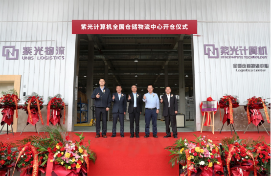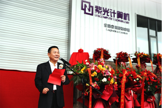 (开仓仪式中,紫光计算机总裁黄辉华与紫光物流总经理方正平共同为紫光计算机全国仓储物流中心揭牌。)
