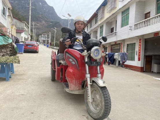 谭志富在重庆城口明月村老家开着电动车送货