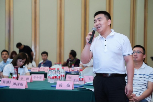 奈曼旗大沁他拉镇哈沙图村第一书记杨亮在交流会上提问