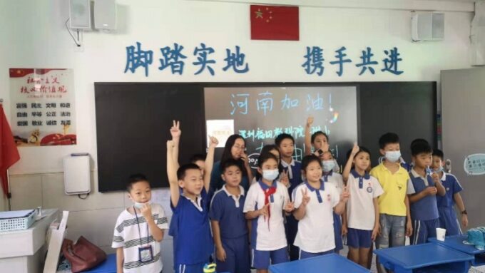 福华小学五(2)班学生陈瑞丰原籍为河南郑州,他对家乡的疫情时刻记挂于心:“我的奶奶,现在已经被转移到避难处了……”,汛情发生以来,他每天都给奶奶发微信,但当地通讯讯号时有间断,往往是上午发微信,下午奶奶才回复。“我希望大家都好好的。”