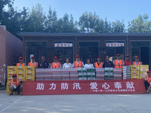 同时,公司上下积极向受灾地区组织物资捐赠,7月26日下午,由中建八局一公司装饰公司中原片区负责人吕义伟带队,向受灾严重的中牟县宁馨苑社区捐赠饮用水56箱、面包36箱、饼干15箱、火腿肠15箱、方便面6箱,以缓解社区居民暂时的饮水、食品问题,受到社区居民的热烈欢迎。抗洪抢险,众志成城,中建八局一公司以实际行动参与到救灾当中,为郑州人民献出一份爱心,彰显央企的责任与担当。
