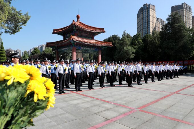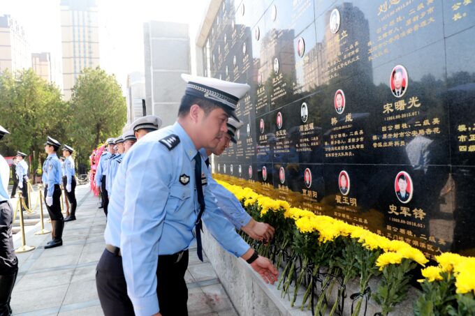 无尽追思忆英雄,祭奠英烈铸警魂。9月30日是我国第八个国家烈士纪念日,为传承公安英烈遗志,深切缅怀公安英烈的丰功伟绩,弘扬公安英烈精神,河南省公安厅高速交警总队组织民警到郑州市烈士陵园参加了省公安厅隆重举行的公安烈士祭奠活动。