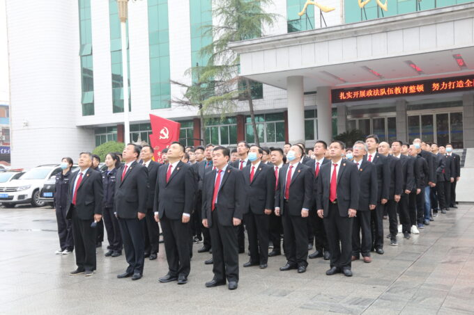 上午7时50分,全体干警面向国旗庄严肃立,升旗仪式正式开始。英姿飒爽的法警迈着矫健的步伐,护卫五星红旗走向升旗台。伴随着庄严雄壮的国歌,鲜艳的五星红旗冉冉升起。干警们身着制服,列队整齐,肃穆而立,满怀崇敬之情向国旗行注目礼,表达对祖国的无限热爱和深情祝福。
