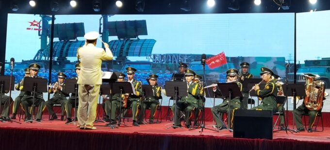 随着夜幕降临,瓷都广场星光闪耀,一场由来自中国人民解放军各兵种的军乐团退役老兵组成“老战友军乐团”,带来了军营文化盛宴。老兵们通过吹、拉、弹、唱等艺术表演形式,歌颂建党百年光辉历程、吹响了强军兴军的号角,为德化市民送上了五彩缤纷的艺术盛典。