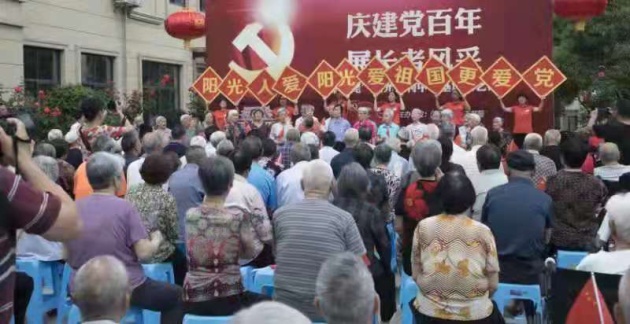 活动现场,“银耀天姥”离退休志愿者们和新昌阳光福利中心的老人们一起载歌载舞,精心编排了《解放区的天》《社会主义核心价值观》《绣红旗》等文艺节目,银色志愿者们把人民群众心向党、一心一意跟党走的故事生动形象地展现出来,以别样的形式学党史、感党恩、颂党情,现场阳光福利中心的老人们反响热烈。其中一位老同志感慨道:“我们能有今天的幸福生活,离不开中国共产党的领导,希望你们今后能带来越来越多的好节目、好活动。”