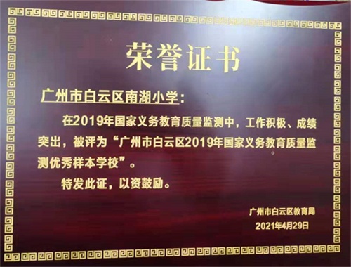 2019年评为“广州市白云区国家义务教育质量监测优秀样本学校”。