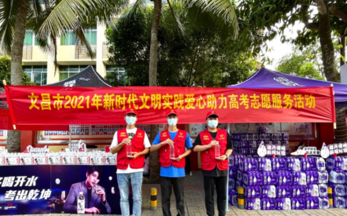 又是一年高考时,十余载寒窗苦读,终在六月开花结果。为进一步弘扬志愿精神、服务社会,努力营造关心、支持高考的志愿服务氛围,给广大考生和家长营造文明和谐、畅通舒心的考试环境,共青团文昌市委、中铁二十二局书香小镇项目联合海南可口可乐公司、椰树集团有限公司、广州津顶饮品有限公司在文昌市华侨中学设立了“我为高考助力”爱心服务站,全力为广大高考生提供贴心服务,为助力高考保驾护航。