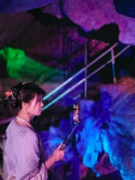 五一长假期间,在位于安徽省宣城市广德市的太极洞风景区,游客人山人海,来自各个网络平台的达人和网红前来景区旅拍打卡,其中一位名为“溧阳陈乔恩”的抖音达人在到达太极洞后就开始直播,景区安排导游为其介绍太极洞内的历史文化和景点设施。