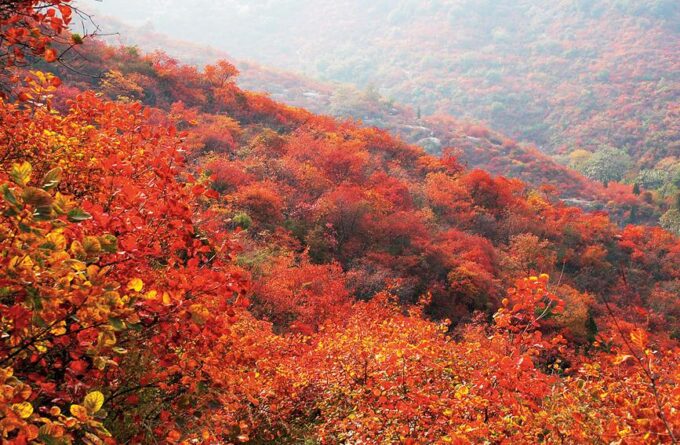 金秋十月,漫山遍野,层林尽染。 近日,全国十大红叶观赏地之一——河南省巩义市竹林镇长寿山迎来第十三届红叶节,满山的红叶似彩霞,吸引众多游客前来观赏。