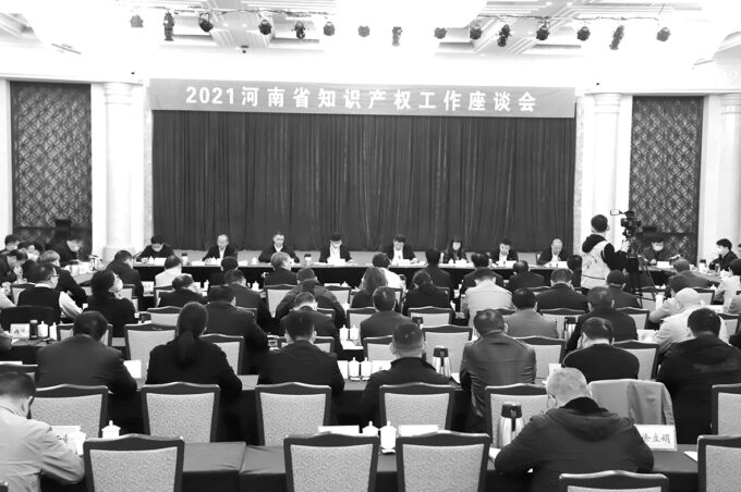 本报讯 10月12日,2021河南省知识产权工作座谈会在郑州召开,河南省市场监督管理局党组成员、省知识产权局局长刘怀章,省纪委监委驻省市场监督管理局纪检监察组副组长杨洪力,省知识产权局副局长闻相俊等出席座谈会,省知识产权局二级巡视员吴灯展主持座谈会。