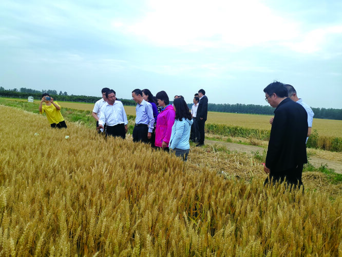 李保明(左二)在讲解小麦栽培技术。(资料图片)