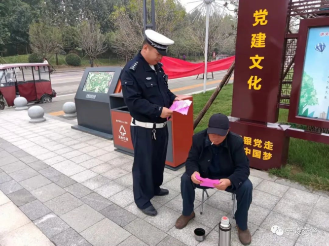 为进一步提高老年人交通安全意识,确保老年人出行安全,10月19日,宁陵交警大队技术中队组织宣传民警深入辖区公园开展针对老年人交通安全宣传。