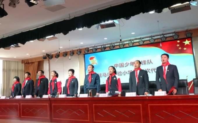随后,少先队员代表向大会献词,大队长吕佳蔚作少先队工作报告。报告厅里红领巾飘动,画面和谐。一张张稚嫩的脸庞上绽放着开心的笑容,一双双清澈的眼眸中闪耀着由衷的喜悦。