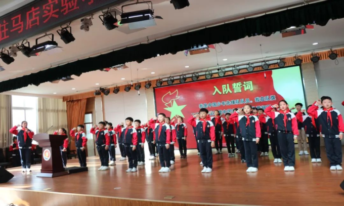 经过举手表决,选举产生了新一届大队委员会,驻马店实验小学校领导为大队委员授标志。全体队员在大队辅导员刘畅老师的带领下,向着鲜艳的队旗用“时刻准备着”的少先队呼号,表达了对未来的无限憧憬和努力前行的坚定信心。