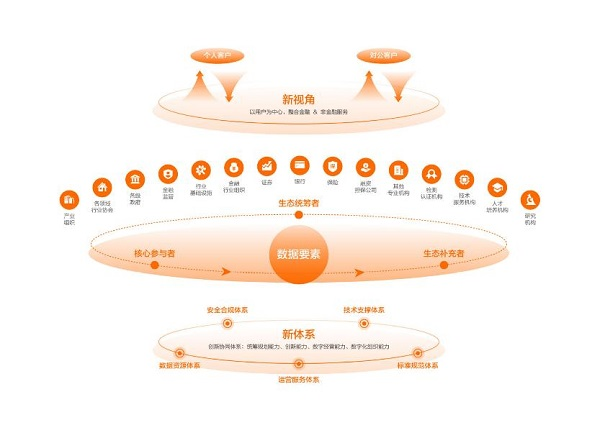 相对于传统的相对分散生态合作模式,数字新生态是以统筹规划为指引,以服务客户多元化和深入解决产业痛点为目标的新体系。它融合了数字化经营的理念,引入一系列新的金融科技作为支撑,充分提炼数据价值实现数据资产化,以多方共赢、价值共生为宗旨。