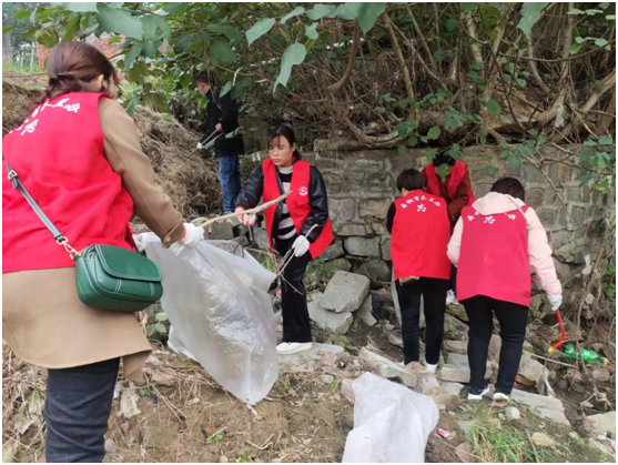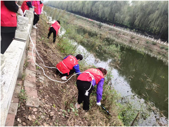 虽然天气阴冷,但丝毫没有影响大家的劳动热情。志愿者们有的身系安全绳下到河坡里用镰刀、耙子清除杂草、树木、白色垃圾、枯枝落叶,有的捡拾废弃物,大到纸壳包装袋,小到烟头,还有散落在草丛中的白色垃圾……