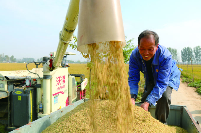 10月27日,平顶山市冠诚水稻种植专业合作社社员在用机器收获水稻。为促进农业增效、农民增收,助推乡村振兴,平顶山市湛河区曹镇乡采取“党支部+合作社+农户”的经营管理方式,积极引导农户栽种绿色优质水稻。今年该合作社所种水稻喜获丰收,起到了良好的示范带动作用。 王毛生 摄