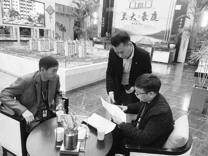 兰考县市场监管局工作人员在当地房地产企业进行检查。