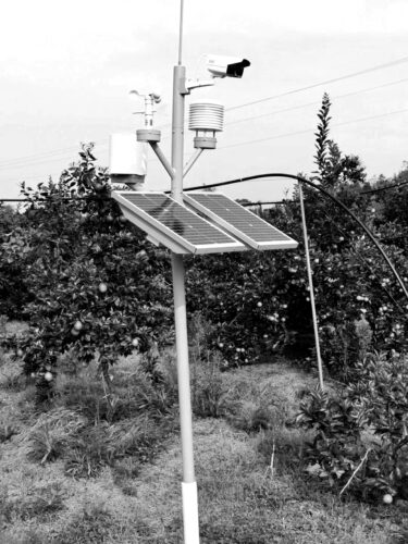 数字采集站依靠太阳能发电工作,安装有多个传感器和多光谱摄像头,既可采集脐橙田温度、湿度、光照、土壤酸碱性、土壤肥力等信息,还可为脐橙田拍摄高清视频和照片。