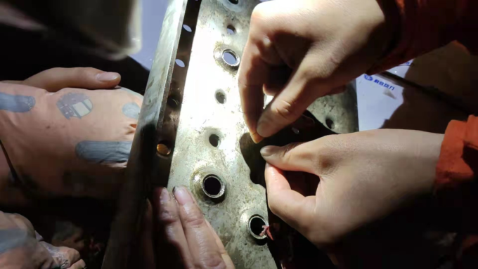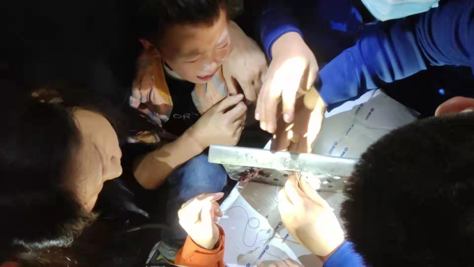 20时04分,救援人员抵达现场。经过仔细观察,发现一男孩的左手食指被卡在半挂车的脚蹬板中间小孔内,食指已经开始肿胀,如不及时处理,后果将不堪设想。由于小孩的手指已经被卡了有一段时间,孩子有点急躁,起初不是很配合救援,当消防员了解到孩子对消防车很感兴趣时,就对孩子说:等手指出来后,消防员叔叔带你坐消防车。孩子情绪迅速稳定下来,十分配合救援。考虑到脚蹬板比较宽,孩子手指又卡在中间小孔内,为方便救援,消防员首先利用断电钳剪切手指周围的脚踏板,去除多余的障碍物,随后用钢锯沿着手指方向小心翼翼地切割,期间为了防止孩子受到二次伤害,消防员用香油涂抹在小孩食指周围进行润滑,并塞入护板进行保护。当钢锯慢慢切割至圆孔边缘,距离手指大概几毫米的位置,消防员使用钳子将圆孔掰断,顺利将孩子手指取出。