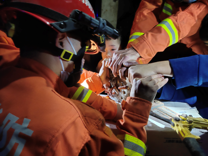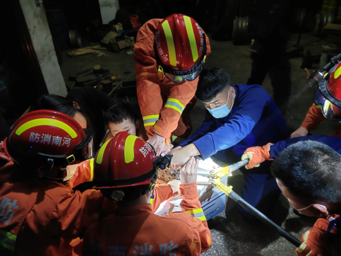 10月27日19时42分许,商丘市宁陵县消防救援大队接到报警称:位于宁陵县G310国道柳河镇段,有小孩手被卡,情况紧急。接警后,消防救援人员迅速赶赴现场进行救援。