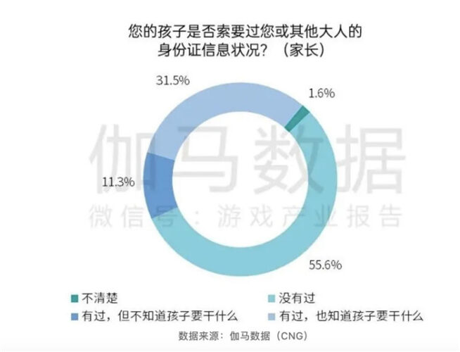 《报告》显示,有42.8%未成年人直接向家长索要过身份证,甚至有11.3%的家长并不了解未成年人索要身份证的目的。对家长而言,有未成年人使用家长身份信息注册游戏账号,使得时段时长限制无法发挥作用,显示出加强家庭监护的重要性。