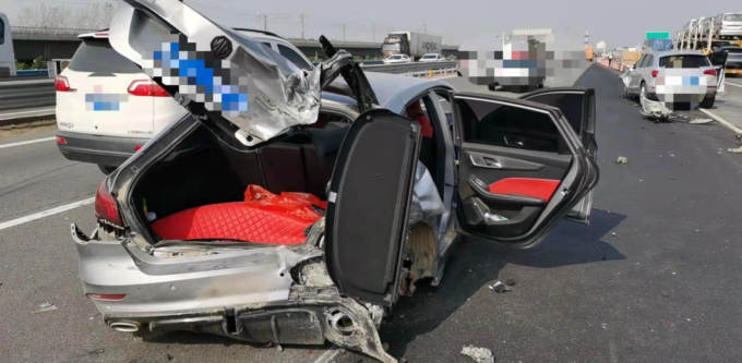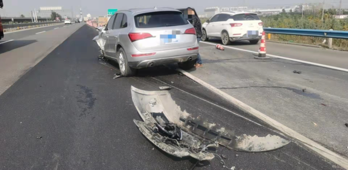 11月4日13时许,陈先生驾驶越野车行驶到京港澳高速703公里东半幅道路临时施工区域时,因为车速过快,遇突发情况刹车不及,同前方一辆轿车发生了追尾交通事故,造成两车受损严重。所幸的是,事发时双方车上的驾乘人员都系了安全带,事故中无人员受伤。