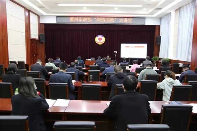 11月10日,漯河市政协举办“知情明政”大讲堂。市政协副主席田冠亭、胡新峰、黄耀春、周新民出席。市政协党组成员、秘书长袁国亮主持。