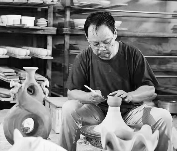 李亚洲正在创作钧瓷。