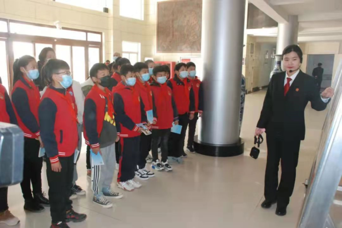 在法院讲解员的引领与讲解下,师生们首先观看了睢县法院优秀干警风采展示专题片,随后参观了院史荣誉室,院党史学习教育、文明创建展板,了解了“法”字历史渊源;参观了法院诉讼服务中心,了解诉讼服务中心各窗口职能及网上立案、跨域立案、网上查询等特色设施服务,并在第二审判庭旁听了一起刑事案件的开庭审理。庭审结束后,承办法官刑事庭庭长阮传超为同学们讲解了本案的宣传教育意义,以及法槌、法袍、法徽等相关法律文化知识。