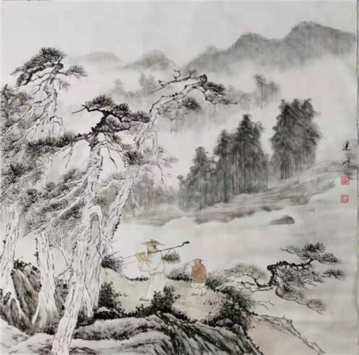 王建峰自幼爱好绘画 ,携笔从戎十余年 ,在火箭军某部文化站工作 ,期间有幸认识了军内外一些知名画家 ,通过虚心向他们学习 ,绘画水平有了大幅度提高 。回到地方后 ,修过瓷器 ,捏过泥塑 ,绘过烙画,在汝瓷釉上创作。虽历经艰辛 ,但从未放弃国画创作 。人生多样的经历和锲而不舍的追求 ,为创作提供了丰富的素材 ,积累了宝贵的经验 。王建峰深谙中国画的精髓,不断创新笔墨技巧。其作品结构严谨,用笔圆润自如,设色典雅秀逸;写意气旺神畅,笔墨华滋,浑然天成,厚实灵动,相映成趣。既有“气象萧疏,烟林清旷”的清远,又有“峰峦深厚,势伏雄强”的高旷,笔墨法度严谨,意境高深。