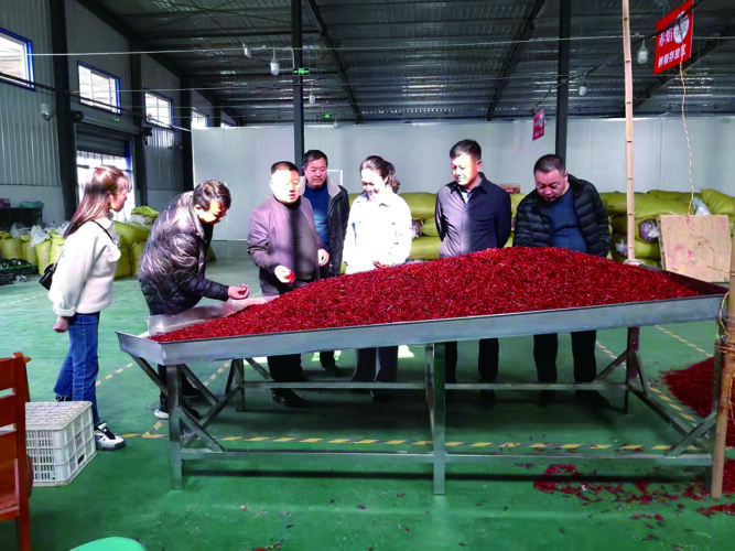 在渑池县英豪镇党委副书记李宁、副镇长杨涛的陪同下,王琳燚、孙全友一行实地考察了河南仰韶黍香农业开发有限公司。公司总经理裴兴国介绍了该公司的发展模式和状况,王琳燚等深入车间工厂,详细了解生产工艺及生产中的技术难题。针对公司存在的问题,王琳燚提出了改进干燥工艺的措施。采用新工艺可提高辣椒的烘干效率,单位时间烘干量提高15%,每吨辣椒的烘干成本降低120元,助力公司降本增效。