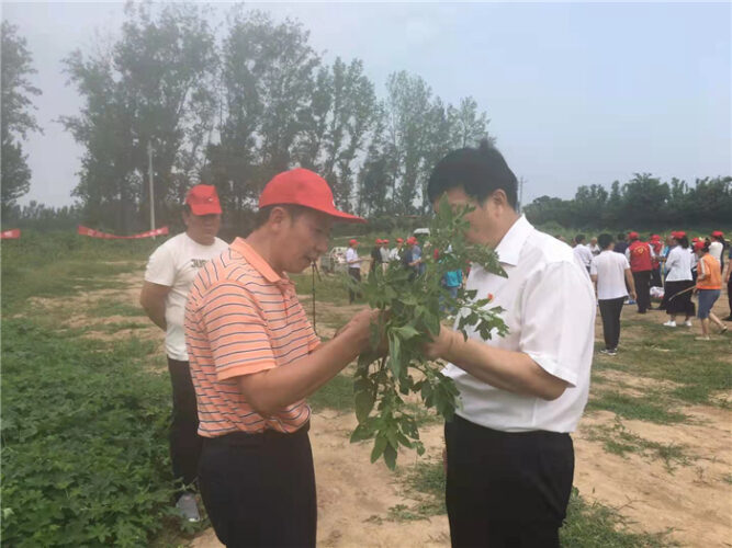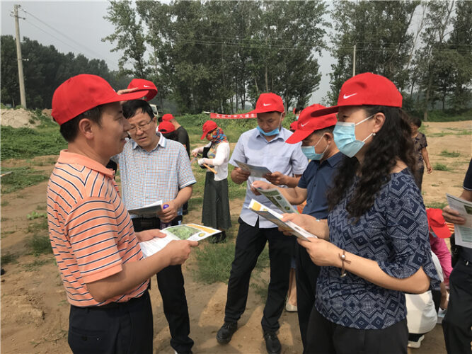 河南农业大学生命科学学院袁志良(左)教授介绍外来入侵物种皱果苋的识别方法