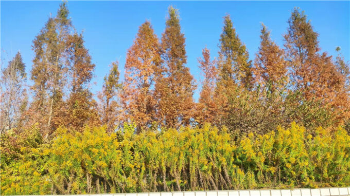 11月15日下午,李家美教授来到天健湖公园,该公园位于郑州市高新技术产业开发区,呈东西走向。在天健湖公园北岸绿化带内一排常青树的下边,生长着平均高度2米的“小黄花”,单株最高的接近3米。李家美教授走近“小黄花”仔细观察。此时,有两位散步的市民经过,看到李家美教授正在“研究”这些“小黄花”,凑上说:“这些美丽的‘小黄花’是不是‘加拿大一枝黄花’?看网上说郑州有这种外来物种,在这里生活了这么久,还是第一次知道这种花的名字。”