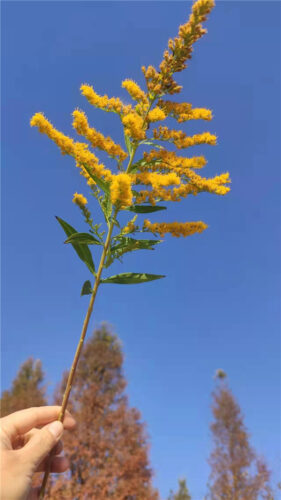 加拿大一枝黄花(学名:Solidago canadensis L.)是桔梗目菊科植物,又名黄莺、麒麟草。原产于北美,属于菊类草本植物,1935年被引入我国,作为庭院花卉在上海、南京等地曾大受欢迎。这种花卉属菊科,地下有横走的根状茎,一枝最高能长到近3米,叶子长12~20厘米,宽1~3厘米,边缘呈不明显的锯齿状,顶端开着一串串黄花,形状像一颗颗淡黄色的小米粒,散发着淡淡的香气。
