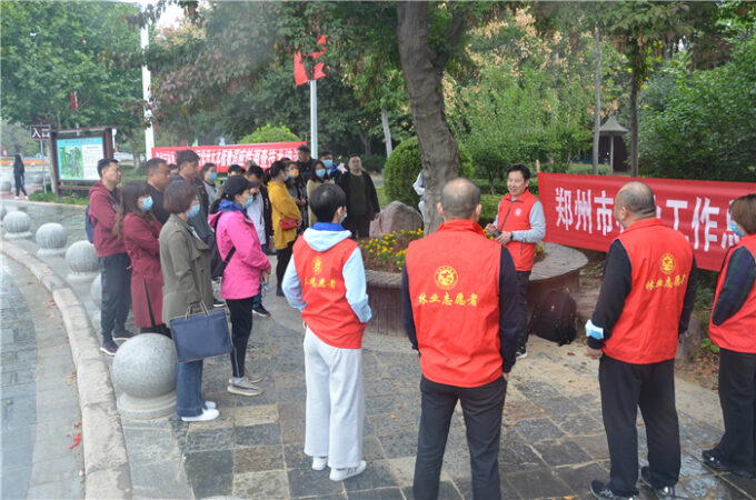 河南农业大学生命科学学院袁志良教授在对林业志愿者进行植物调查技术培训