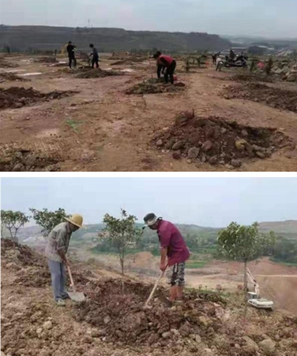 据郭锋军介绍,自2018年开展露天矿山综合整治以来,公司共投入生态修复治理资金5862.17万元;恢复治理土地2174.9亩(其中恢复治理可耕地1082余亩,已种植玉米130亩、芝麻55亩、红薯18亩、种植艾草83亩、金银花64亩;林地1092.9余亩);回填方1506670m³;植树130569棵;绿化、铺草皮808117㎡(1212.17亩);硬化13米宽的道路5公里;砌挡土墙1006米;修筑排水渠206米;修建荷花园景观一座和青城社区游园一处。荣誉见证着成绩,也见证着发展,2020年1月,该公司被纳入国家级绿色矿山名录,成为平顶山市首座露天开采的国家级绿色矿山。