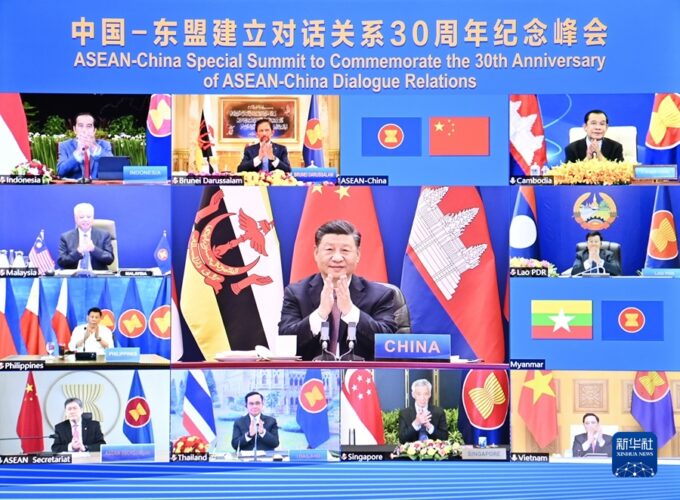 11月22日上午,国家主席习近平在北京以视频方式出席并主持中国—东盟建立对话关系30周年纪念峰会,发表题为《命运与共 共建家园》的重要讲话。中国东盟正式宣布建立中国东盟全面战略伙伴关系。