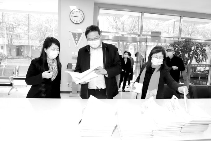 刘怀章(左二)一行在国家知识产权局河南业务受理窗口了解业务办理情况。