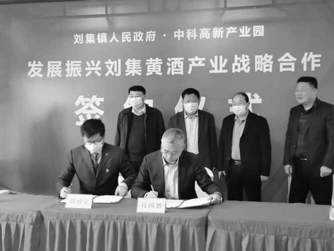 今年以来,刘集镇党委、镇政府将黄酒产业作为支柱产业加以引导扶持,成立刘集镇黄酒酿造协会,规划黄酒产业园区,成立了刘集黄酒集团;组织骨干黄酒酿造企业参加各类食品展销会、经贸洽谈会,打开刘集黄酒销路,打响刘集黄酒品牌,使刘集黄酒在守正创新中实现了组团发展。该镇党委、镇政府多次对黄酒产业发展召开专题研讨会,同时邀请相关专家、黄酒企业家举行座谈会,分析市场形势,探讨发展方向,振兴刘集黄酒特色产业,让具有数千年匠心传承的刘集黄酒酿造手艺重新发扬光大。此次刘集镇政府与中科高新产业园进行合作,旨在进一步密切双方战略合作关系,推动双方实现优势互补,互惠互利,共谋发展。双方在人才供需、产品研发、技术革新、成果转化、资本运作等方面进行全方位的政企合作,从而提振该镇黄酒支柱产业快速发展。