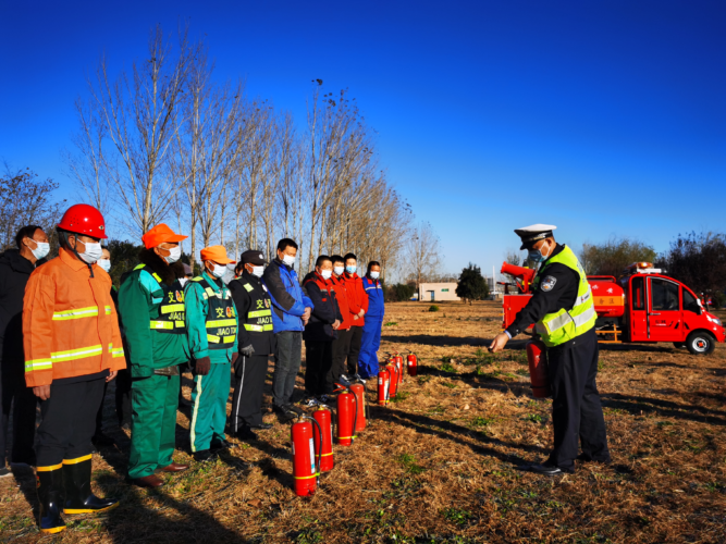 面对演练场上的熊熊烈火,一支队副支队长吕厚敬向全体参演人员详细讲解了正确使用灭火器的步骤、注意事项,进行灭火示范教学,对服务区冬季火灾事故预防工作提出了明确要求。随后,采取小组和一对一演练相结合的方式,对全体参演人员进行了正确使用灭火器实操练兵考核和讲评。