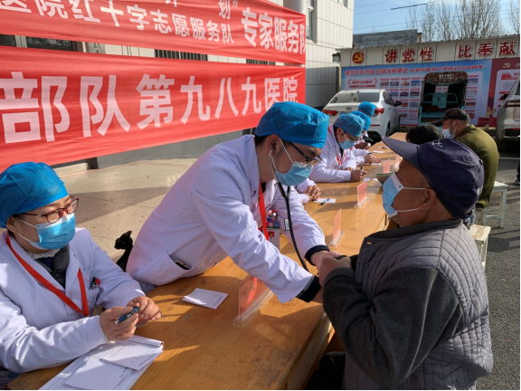 近日,平顶山市解放军第九八九医院红十字志愿服务队组织心血管内科、神经内分泌科、肿瘤血液科、妇产科、普通外科、呼吸内科、消化内科、眼科等医疗专家10余名到宝丰县医疗健康集团周庄镇分院开展义诊活动。