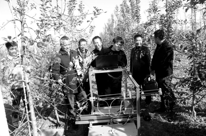 11月28日,由西北农林科技大学机电学院果园机械研究团队研发的苹果采摘机器人,在陕西省宝鸡市凤翔区雨嘉果业合作社进行试验示范。该设备的研发,将重点解决果业机械化采摘中存在的问题,从而提升生产效率,降低人工成本,增加果农收入。 胡润田 摄