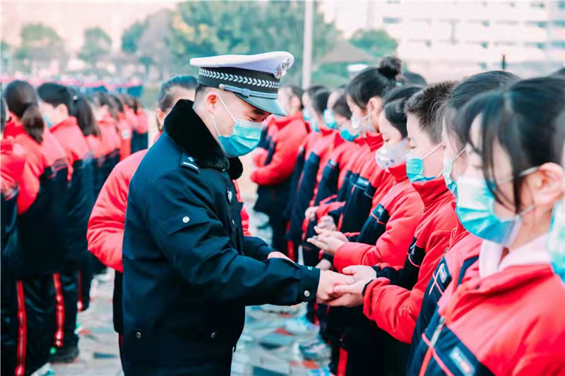 升旗仪式结束后,交警二大队宣传民警王豪杰走进班级内与师生们共同开展了一次丰富多彩的交通安全主题班会。