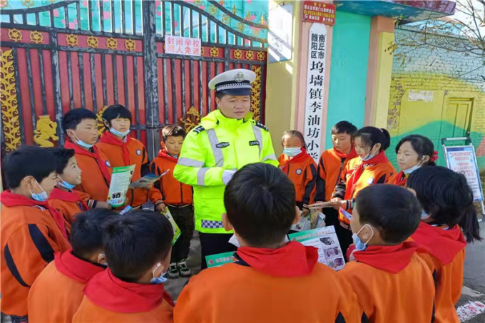 在第十个122“全国交通安全宣传”到来之际,为进一步提高广大群众的道路交通安全意识,法治意识和文明意识,预防和减少道路交通事故的发生,商丘市公安局交警支队联合商丘日报社、睢阳区司法局到睢阳区坞墙镇李油坊村,开展122“全国交通安全宣传”进农村活动,为该村群众和小学生以及企业员工上了一堂生动的交通安全课,受到了热烈欢迎。