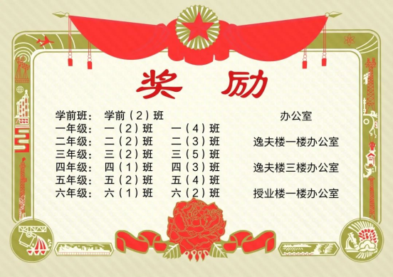 经过统计、汇总,学前班评出1个优秀奖,1至6年级每个级段评出2个优秀奖,各科室评出3个优秀奖。(黄成 李好 潘翔宇)