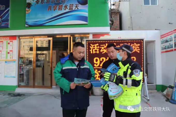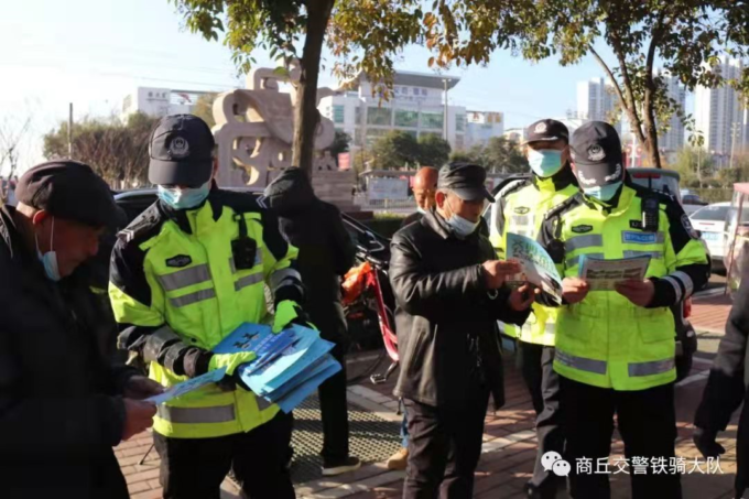 2021年12月2日是第十个“全国交通安全日”,为进一步提升广大交通参与者的文明交通意识,遵守交通法律法规,文明参与交通,掌握交通安全知识。当日,商丘市公安局交警支队铁骑大队以“守法规知礼让、安全文明出行”为主题,深入到市区公园、商铺、加油站、超市、街头开展“全国交通安全日”主题宣传活动。
