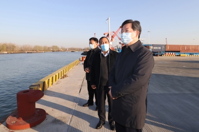 12月1日,省委书记楼阳生在周口中心港调研临港经济发展情况。