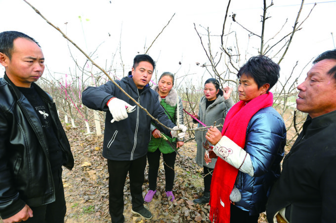 时下正值“锄头挂梁、镰刀上墙”的冬季农闲时节,振红家庭农场紧抓这一时机,从临近的滑县王庄镇龙村益康达家庭农场请来果树专家为社员“充电”,把技术课堂设在果园里,手把手指导农户果树枝条修剪、生物叶面肥应用、果品增大增色等技术,让有限的果树资源发挥最大的经济效益,变“冬闲”为“冬忙”。