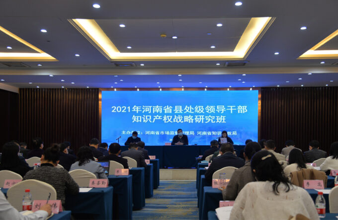 本报讯 10月25~29日,由河南省市场监督管理局、河南省知识产权局主办,国家知识产权运营公共服 务平台承办的2021河南省县处级领导干部知识产权战略研究班在郑州举办。河南省市场监督管理局党组成员、省知识产权局局长刘怀章,省知识产权局二级巡视员吴灯展出席开班仪式,副局长闻相俊主持开班仪式。